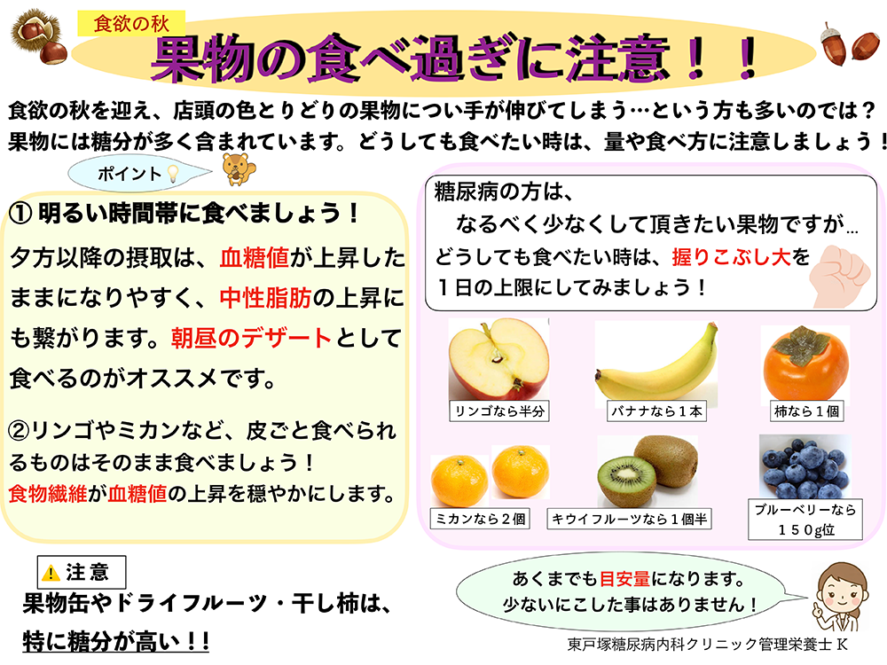果物は糖質が多いため、糖尿病を患う方は控えることをお勧めします。果物は嗜好品と認識して気を付けましょう。